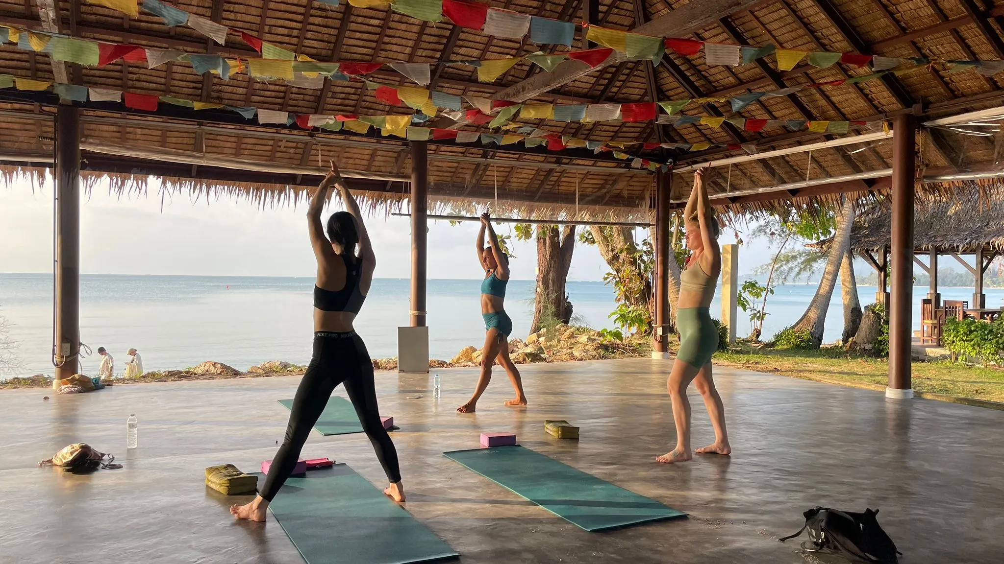 Afternoons include a break. Some people walk on the beach. Some sleep. Some sit and do nothing. The downtime is part of the training. Integration does not happen only during formal practice.